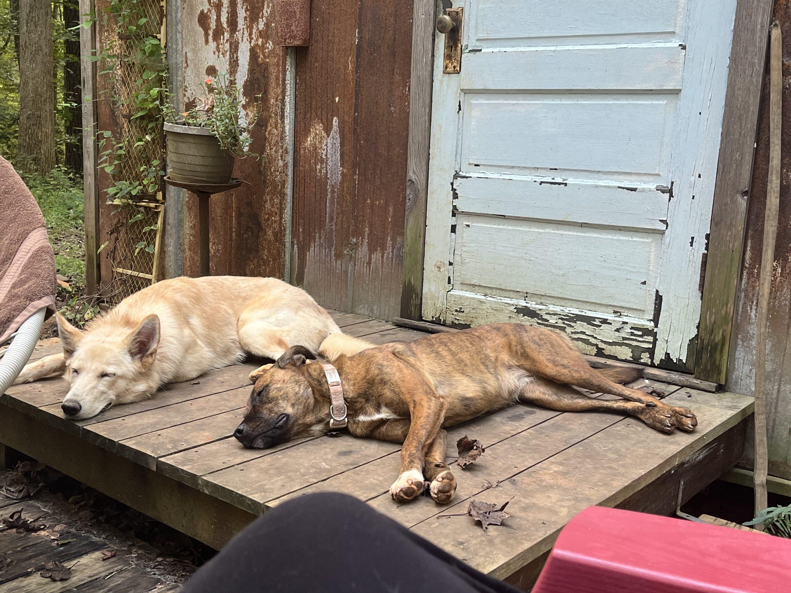 My days found their rhythm. Mornings started with cold well water showers outdoors and a barefoot woods walk with a canine companion or two. (We had multiple dogs over the 8 year span).